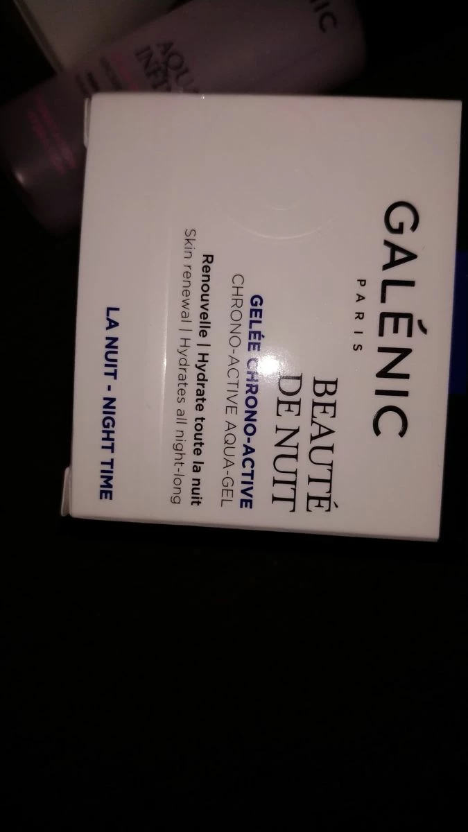 Η κρέμα BEAUTE DE NUIT της Galenic έχει δημιουργηθεί με μια χρονο-προγραμματισμένη δραστηριότητα το chrono- patch geltm. Το CHRONO-PATCH GELTM είναι μία καινοτόμος δομή που συνδυάζει με ισορροπημένο τρόπο ένα ζελ σε μορφή υδάτινου υποστρώματος (patch), που ενυδατώνει το δέρμα τη νύχτα ακολουθώντας τους φυσιολογικούς του ρυθμούς. Η Μακρο-πρωτεάση των Καρικοειδών απομακρύνει τα νεκρά κύτταρα από την επιδερμίδα και απελευθερώνει την ανώτερη στοιβάδα του δέρματος. Έτσι στη 1 το πρωΐ που η κυτταρική ανανέωση βρίσκεται στο απόγειό της, τα κύτταρα που μόλις γεννήθηκαν ανεβαίνουν πιο εύκολα στην επιφάνεια και παίρνουν θέση ανάμεσα στα ήδη υπάρχοντα για να δημιουργήσουν ένα «νέο δέρμα».