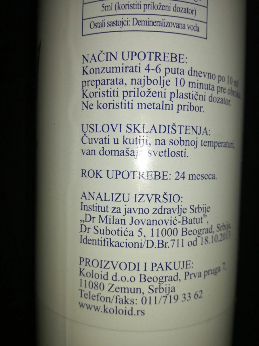 Κολλοειδης αργυρος .συσκευασια 500 ml.