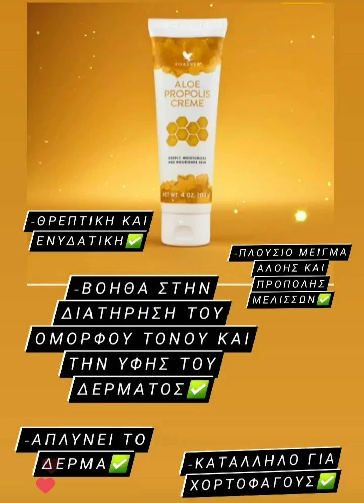 Ένα πλούσιο, κρεμώδες μείγμα αλόης βέρα, πρόπολης μελισσών και χαμομηλιού που βοηθά στη διατήρηση του τόνου και της υφής του δέρματος.