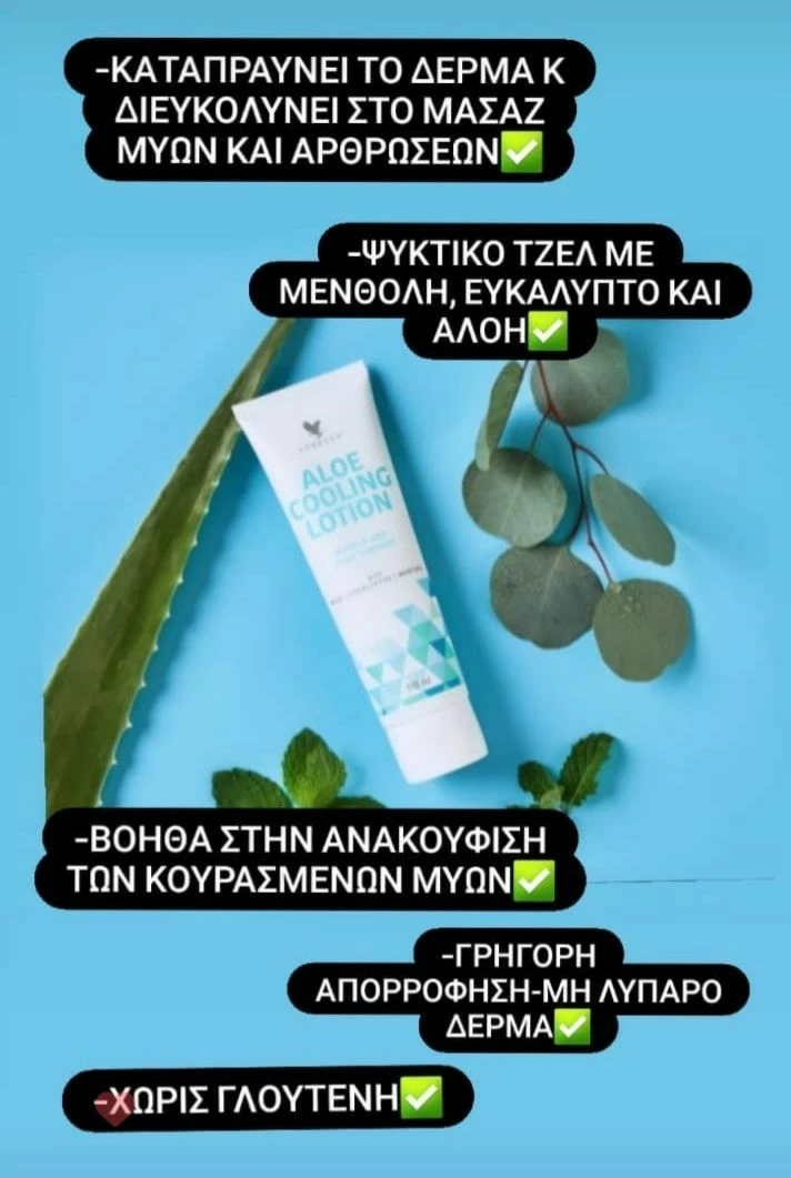 Ανακουφίστε τους κουρασμένους μυς και τις αρθρώσεις σας μετά από μια κουραστική μέρα ή την έντονη προπόνηση με τη νέα μας Aloe Cooling Lotion. Με ελαφριά, αναζωογονητική σύνθεση παρέχει αίσθηση στιγμιαίας ψύξης, αναζωογονώντας τους σφιγμένους μυς και ανακουφίζει.