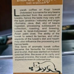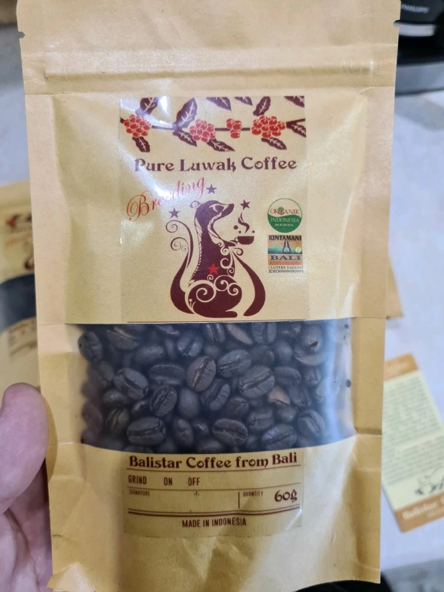 Luwak Coffee,ο πιο ακριβός και καθαρός καφές του κόσμου, αυθεντικός βιολογικός, το έφερα από το ταξίδι μου στην Ινδονησία, η δοκιμή αυτού του καφε είναι μια εμπειρία.Το πήρα από Coffee Roaster, που το ζώο τρώει μόνο βιολογικούς καρπους. Μόνο για γνώστες.