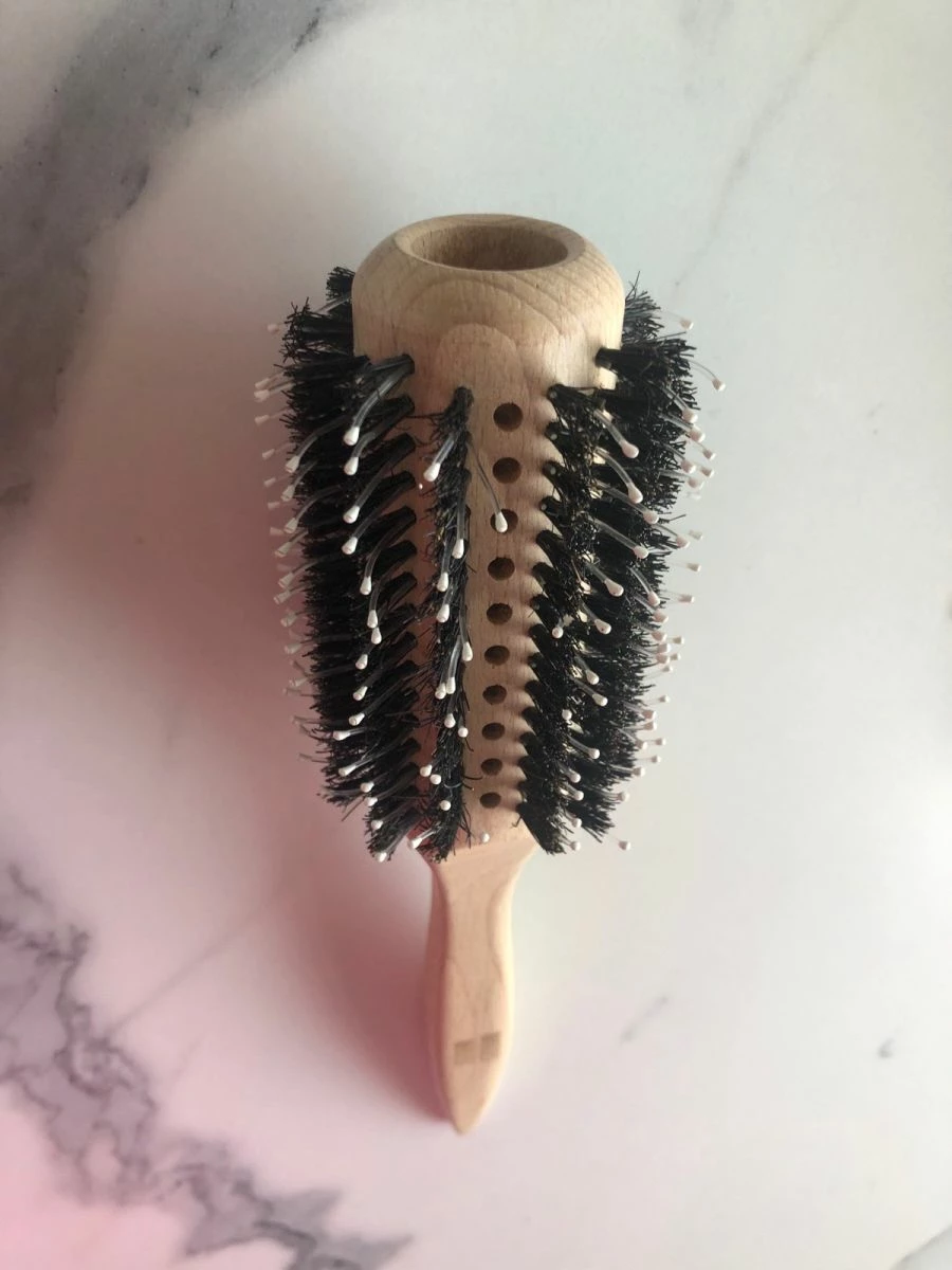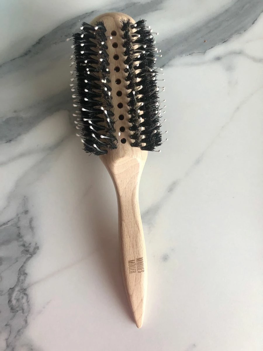 Βούρτσα μαλλιών Super Round Styling Brush από την εταιρία Marlies Moller. Είναι κατάλληλη για το ίσιωμα των μαλλιών με πιστολάκι. Διαθέτει φυσικές τρίχες οι οποίες γλιστρούν εύκολα στα μαλλιά και τονώνουν την κυκλοφορία του αίματος στο τριχωτό της κεφαλής. Παράλληλα διανέμουν τα φυσικά έλαια από τις ρίζες σε όλο το μήκος των μαλλιών κάνοντάς τα λαμπερά και υγιή.