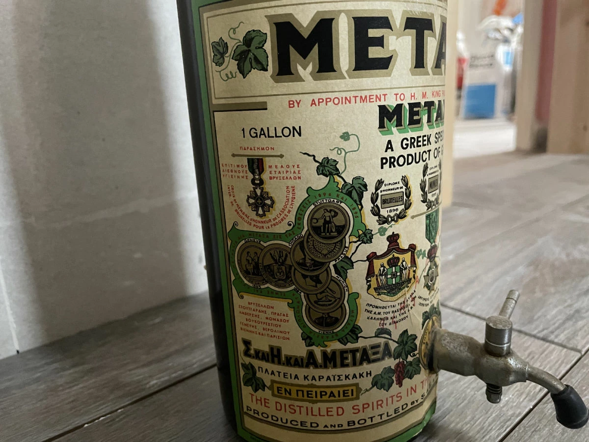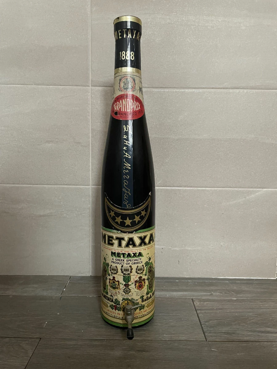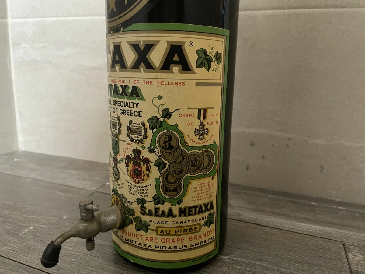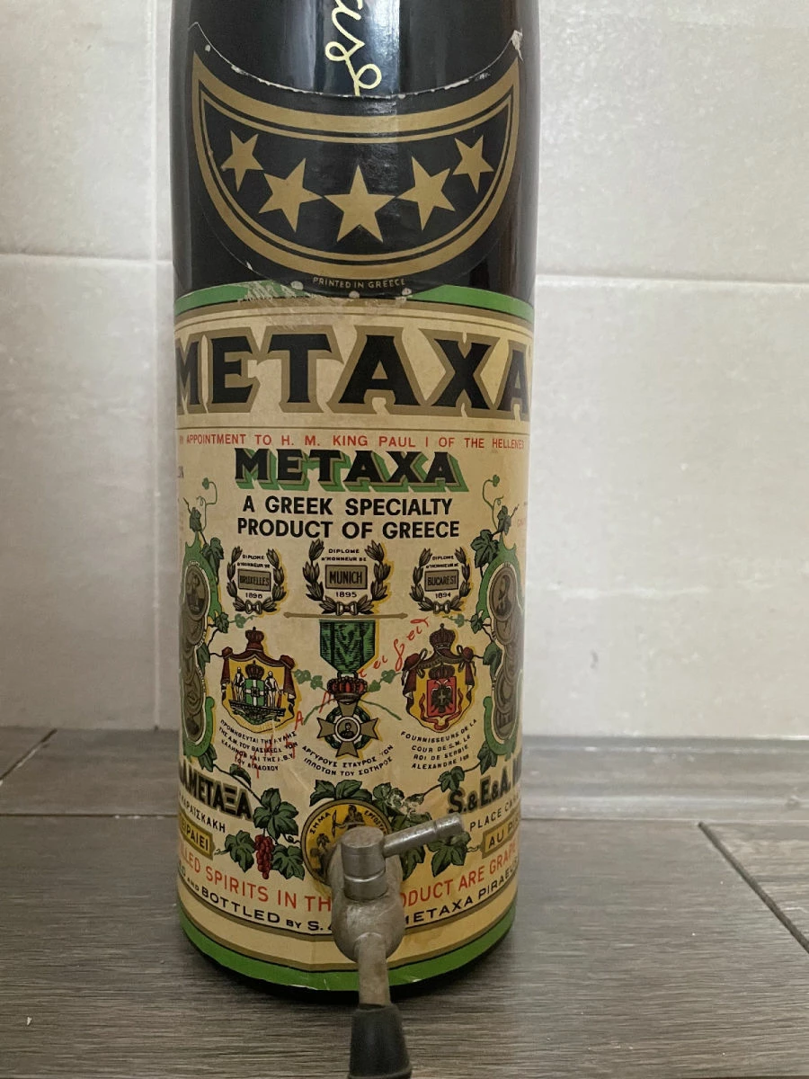 Συλλεκτικό -κλειστο- μπουκάλι Μεταξα 5 αστερων, 3 λιτρα χωρις με κλειστη βρύση οπως φαίνεται στις φωτογραφιες