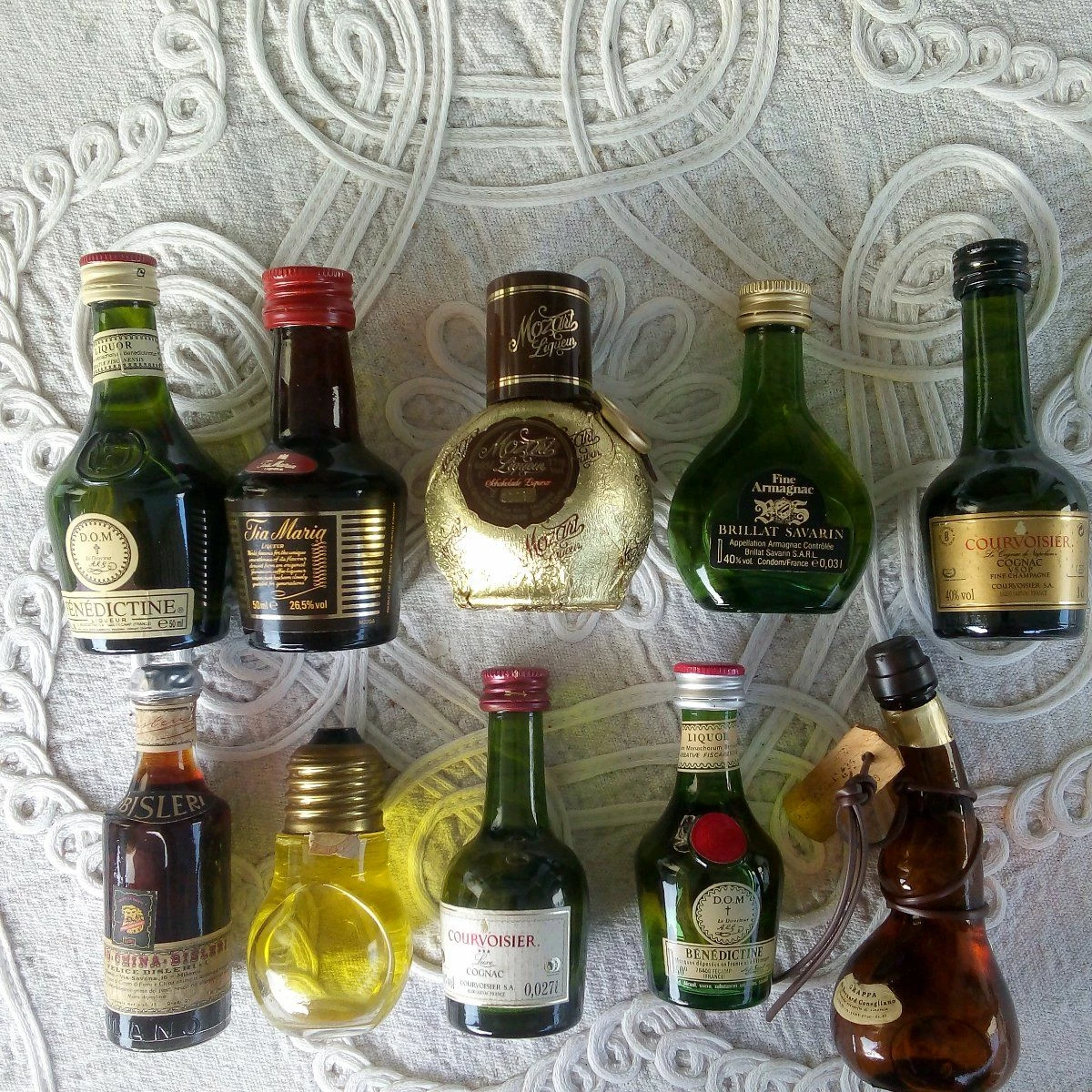 10 μινιατούρες σφραγισμενες, γυάλινα μπουκαλάκια σε πολύ καλή κατάσταση αγορασμενα δεκαετια 80 και 90 κυρίως κονιάκ και Λικέρ πωλούνται μαζί. Δώρο τρία ακόμη σφραγισμένα αλλά με μέρος του περιεχομένου τους εξατμιστηκε.