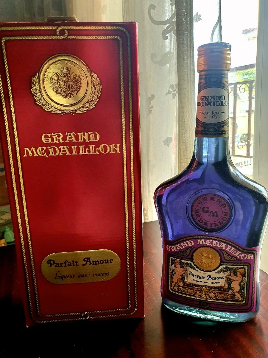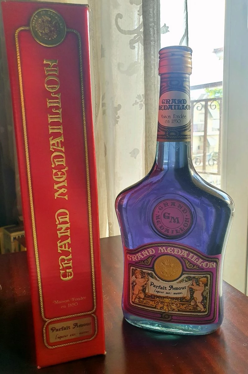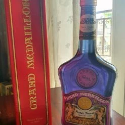 Μπουκάλι Συλλεκτικό Λικέρ Αντίκα “Grand Medaillon”, σφραγισμένο. Σε πολύ όμορφο μωβ χρώμα ποτού, μαζί με το κουτί του. Για συλλέκτες ή και διακοσμητικό. Από την συλλογή των παππούδων μου.