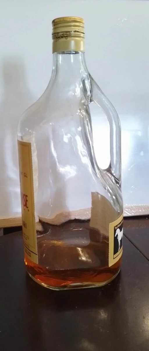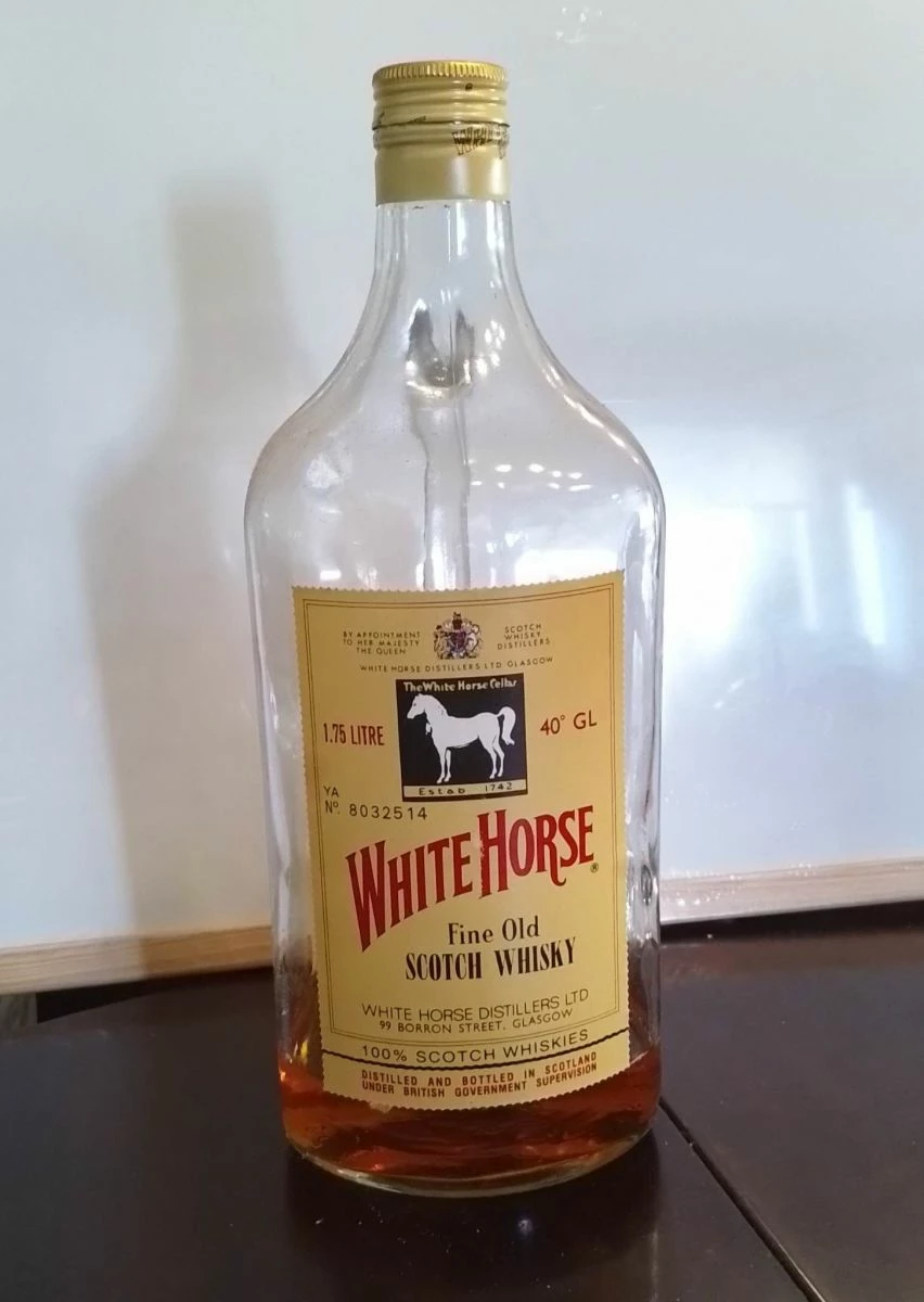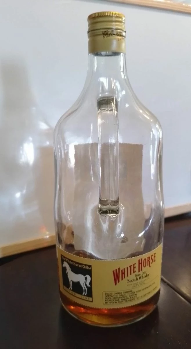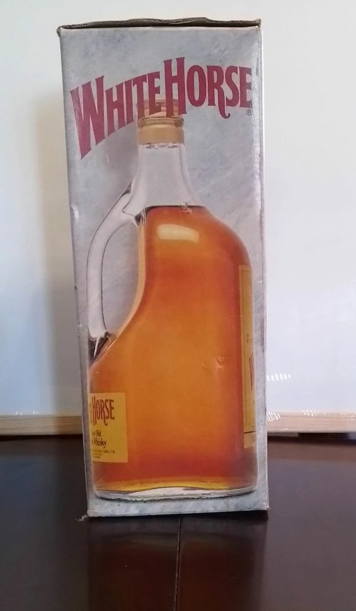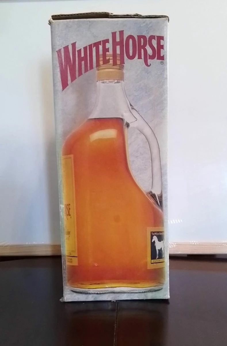 Μπουκάλι στο κουτί του. White Horse με λιγο περιεχομενο μεσα. δεν υπάρχει ραγισμα στο μπουκαλι ειναι αψογο.