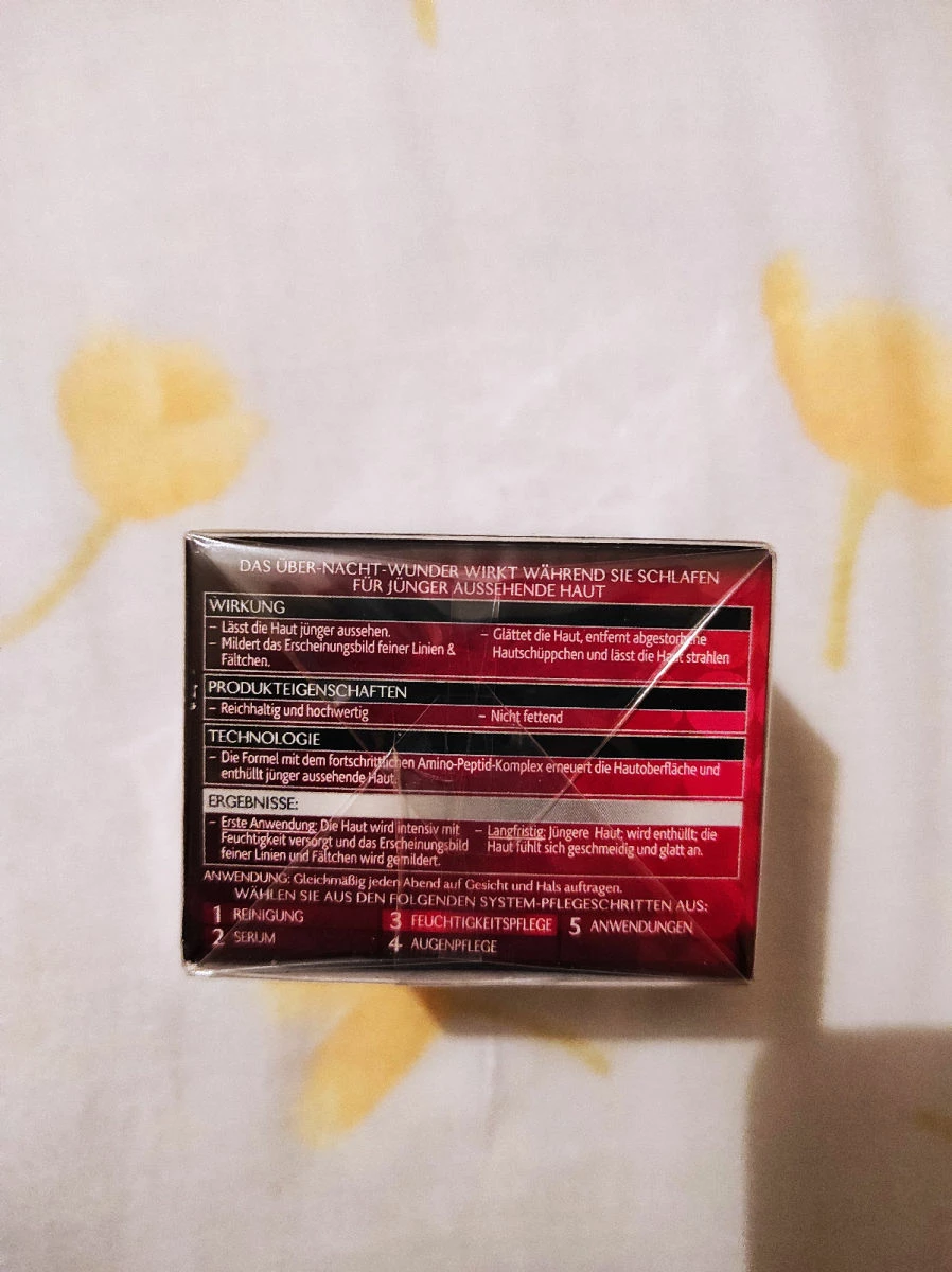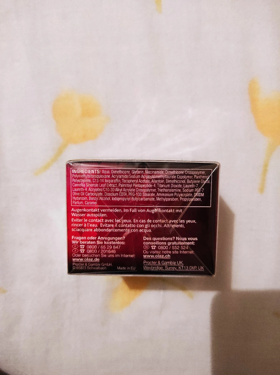 Η κρέμα προσώπου της εταιρείας Olay (Olaz στα γερμανικά) είναι μια κρέμα νυκτός κατάλληλη για ηλικίες 40+. Ενδείκνυται για όλους τους τύπους δέρματος.