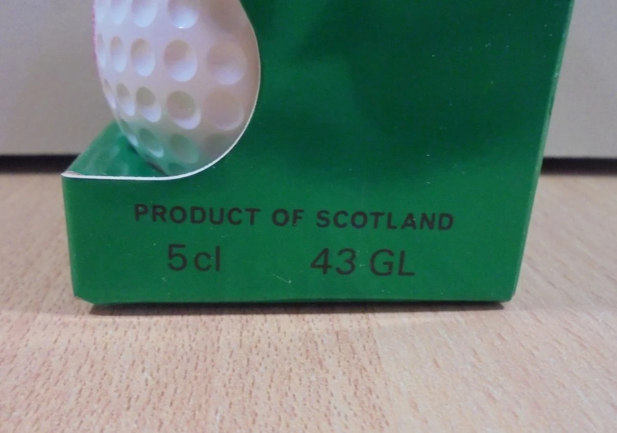 Old St. Andrews Scotch Whisky παλιό μπουκαλάκι μινιατούρα σε σχήμα μπάλας γκολφ