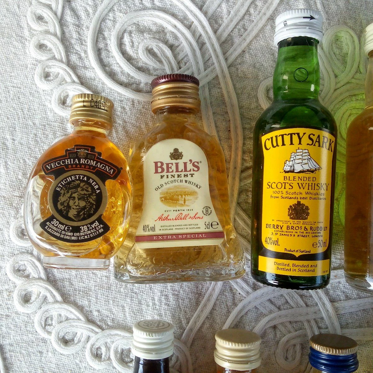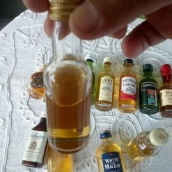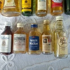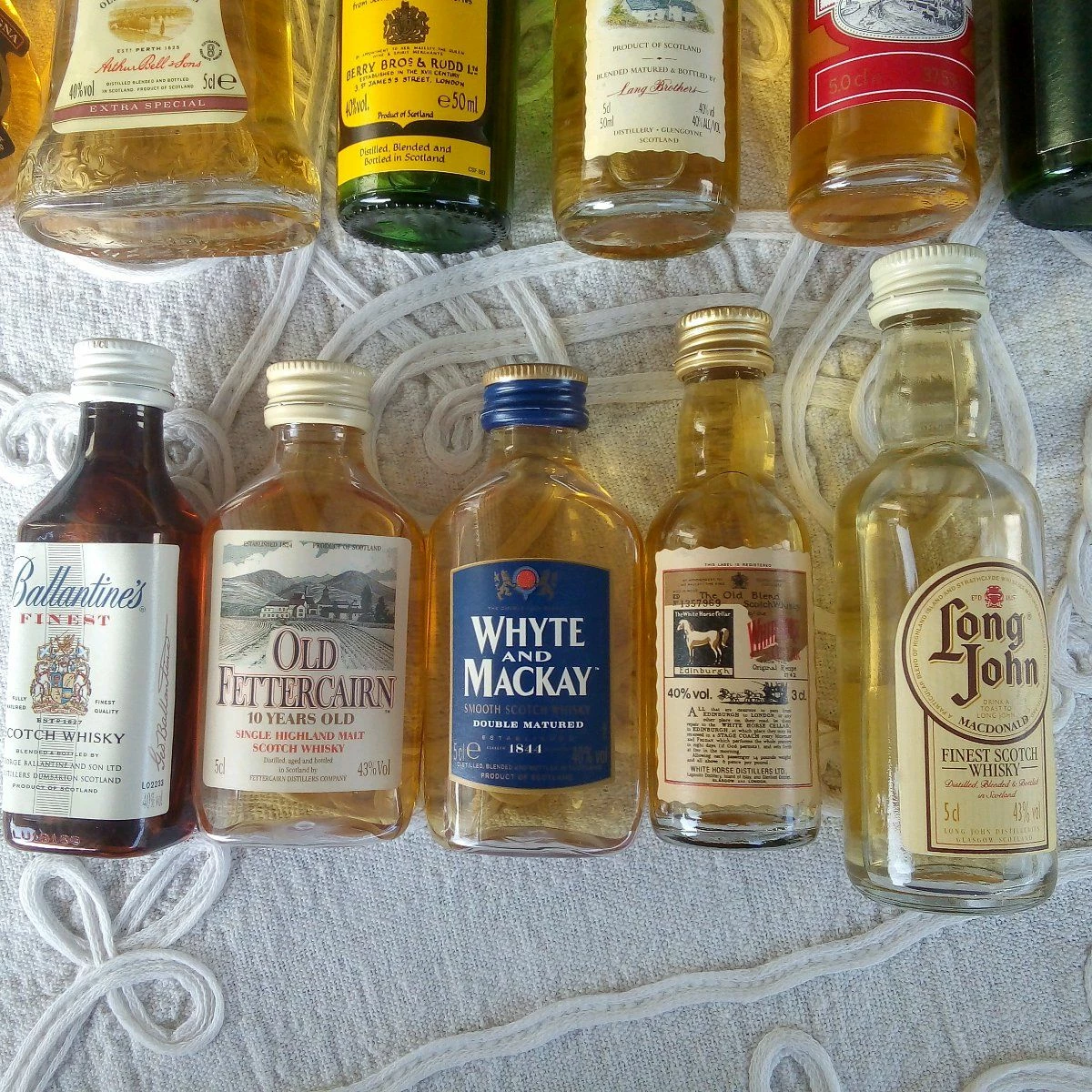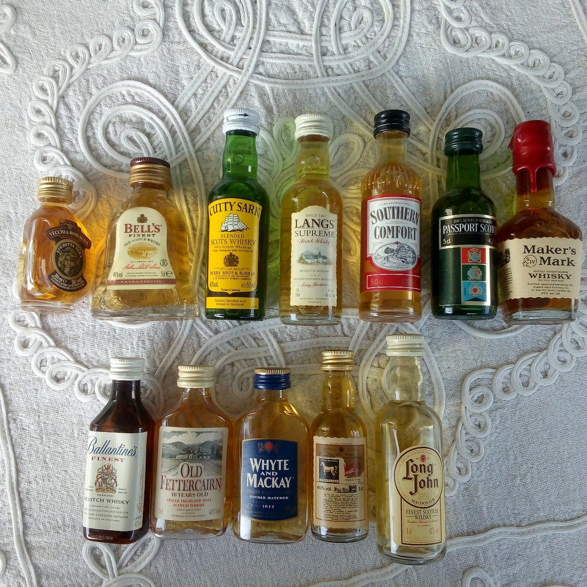 Πωλούνται μαζί 7 γυάλινα μπουκαλάκια ουισκυ σφραγισμένα σε πολύ καλή κατάσταση και δίνονται δώρο 5 ακόμη σφραγισμένα (πλαστικά και γυάλινα) που το περιεχόμενο τους έχει εξατμιστεί μερικώς.