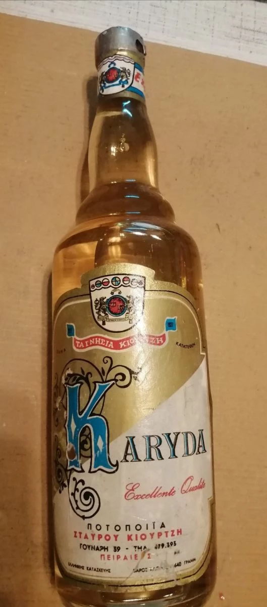 Vendora Παλιό μπουκάλι σφραγισμένο με ποτό καρύδα. Της ποτοποιίας Σταύρου Κιουρτζη 1960 στον Πειραιά.