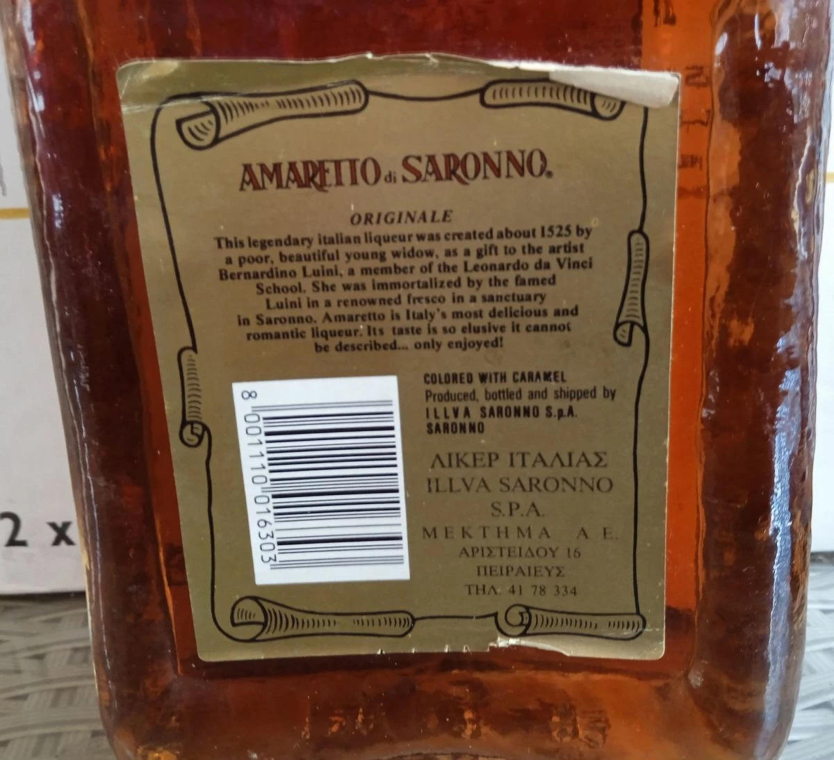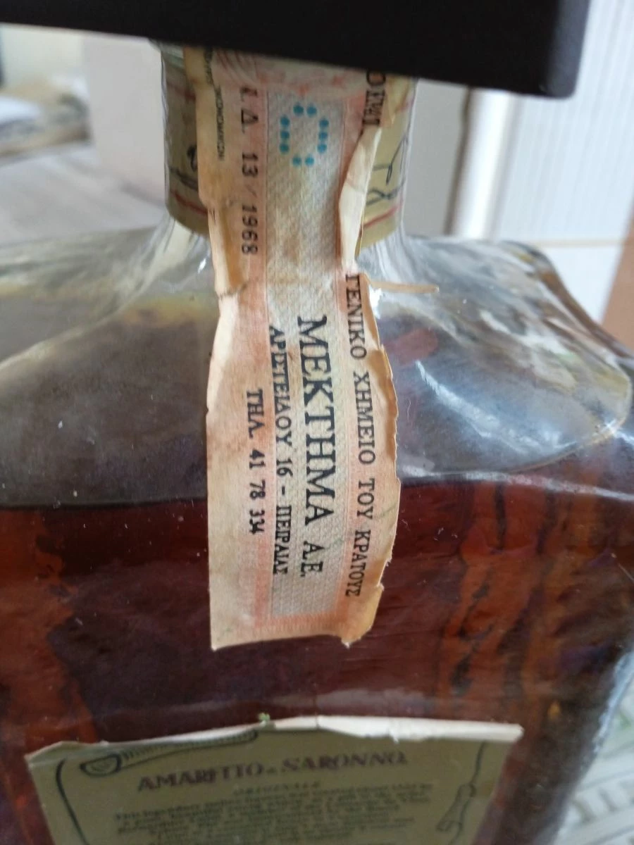 Vendora Παλιό συλλεκτικό ιταλικό Amaretto Di Saronno με την ταινία του Γενικού Χημείου του Κράτους του 1968.