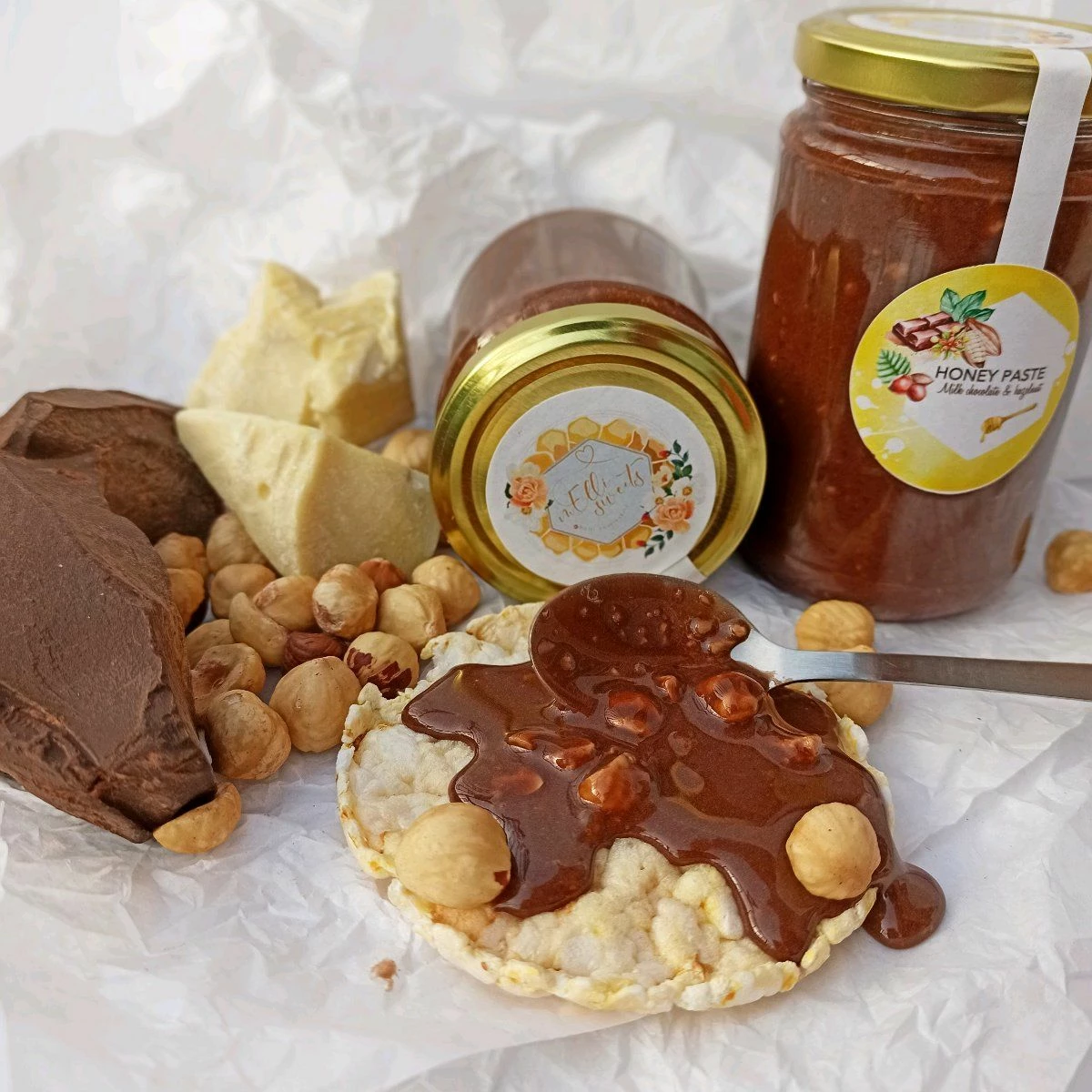 Σοκολατένια πάστα βασισμένη σε μέλι. Αποτελείται απο Κρητικό μέλι (θυμάρι,βότανα), κακάο μαζα (μη το μπερδεύεται με το απλό κακάο) κακάο βούτυρο, γάλα καρύδας και φουντούκι..