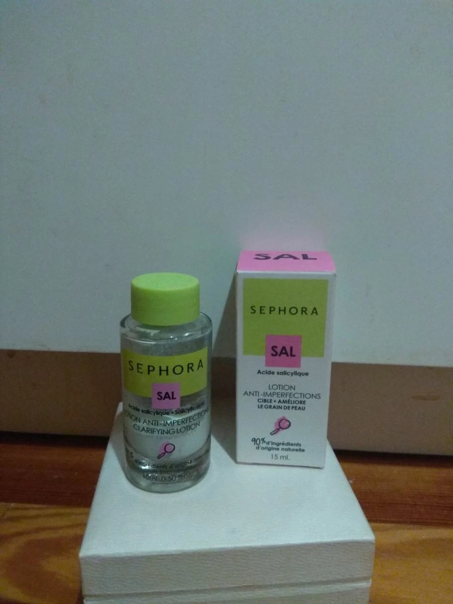 Τονωτική λοτιον Sephora τοπικής χρήσης για τα σπυράκια με σαλικυλικό οξύ και άλλα συστατικά. Χρησιμοποιήθηκε 2 φορές