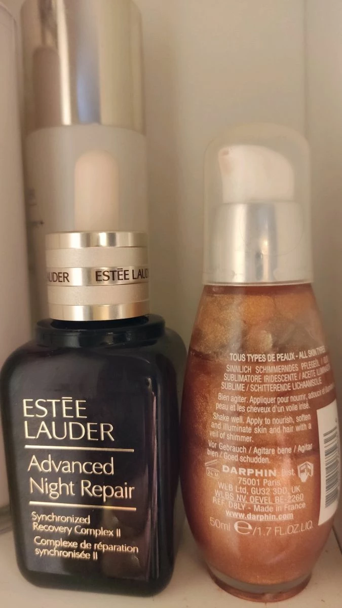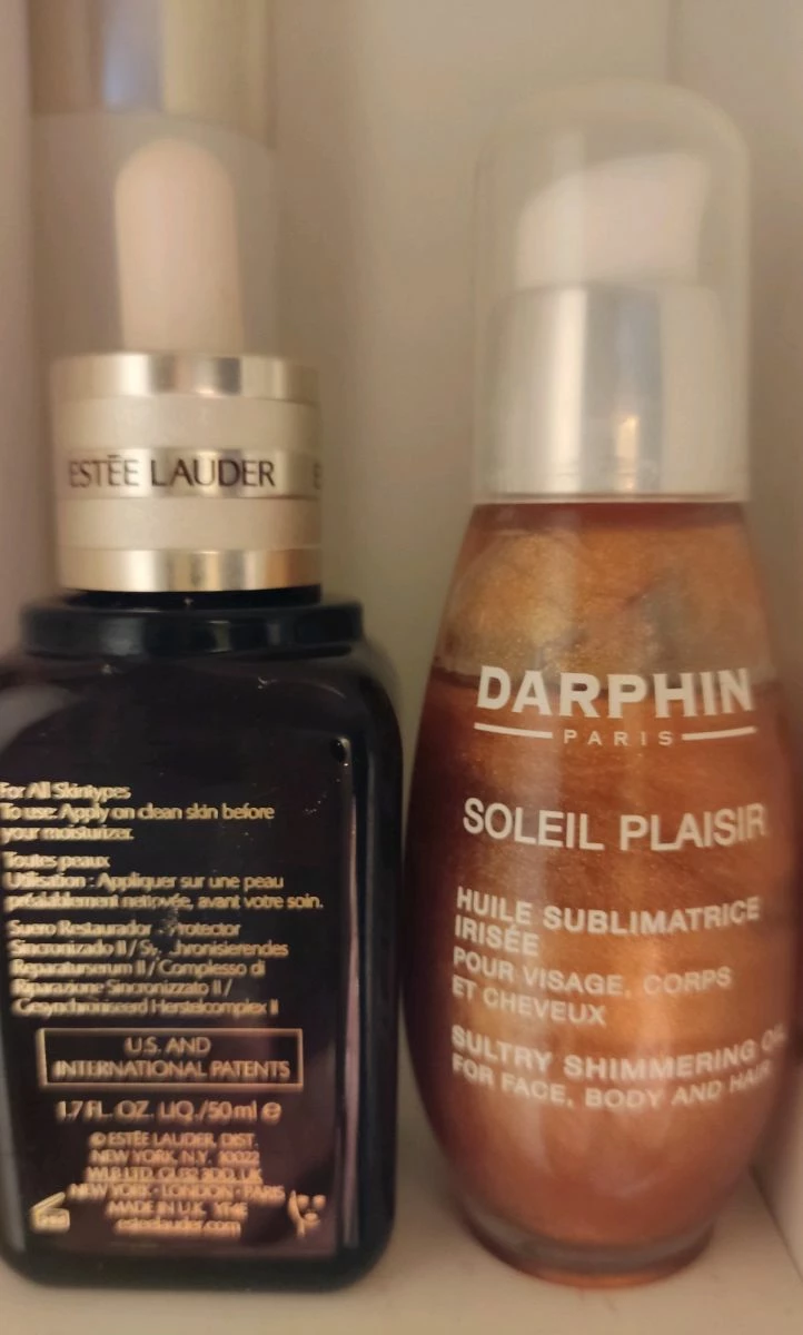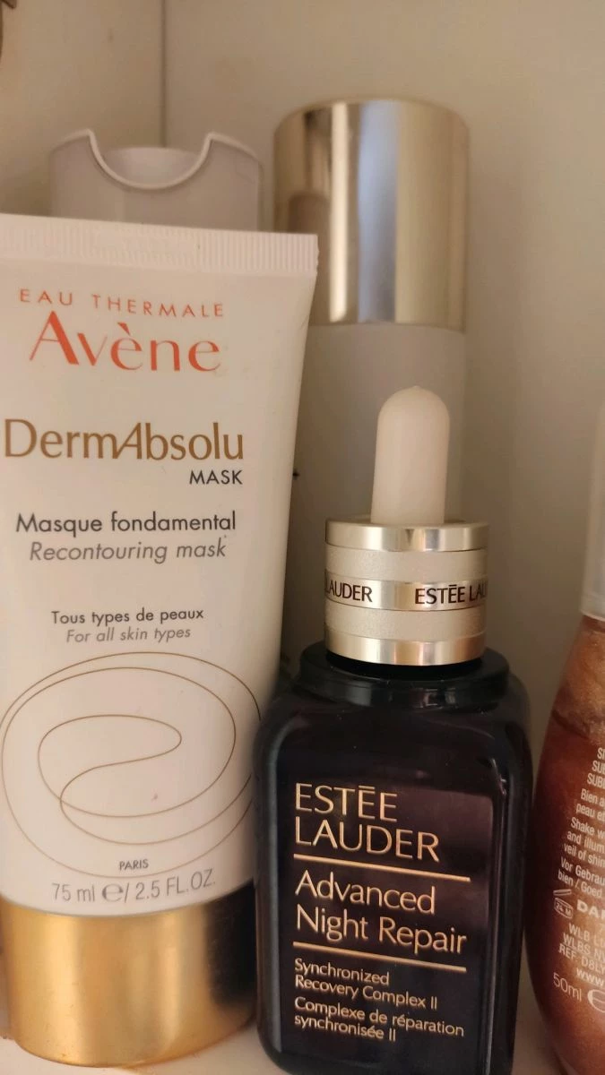 Τρία καλλυντικά nigth advance repair serum της estee lauder, darphin soleil serum και avene dermabsolu mask όλα πάνω από την μέση,ανοιγμένα πρόσφατα μόνο στα 40 όλα μαζί.Αν θέλετε μεμονωμένο κομμάτι στείλτε μου μήνυμα