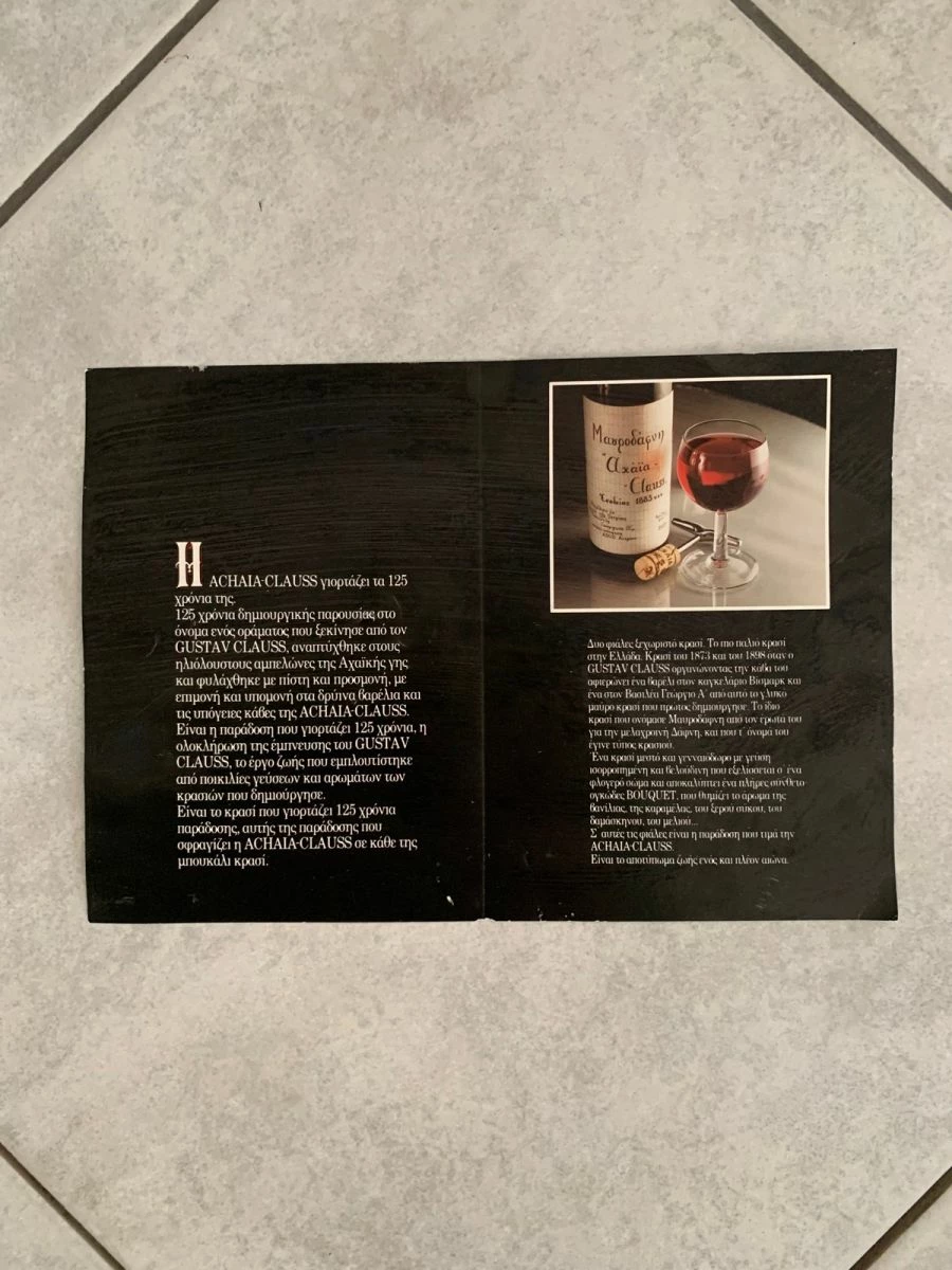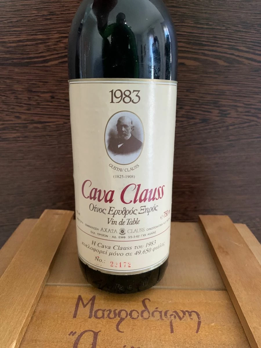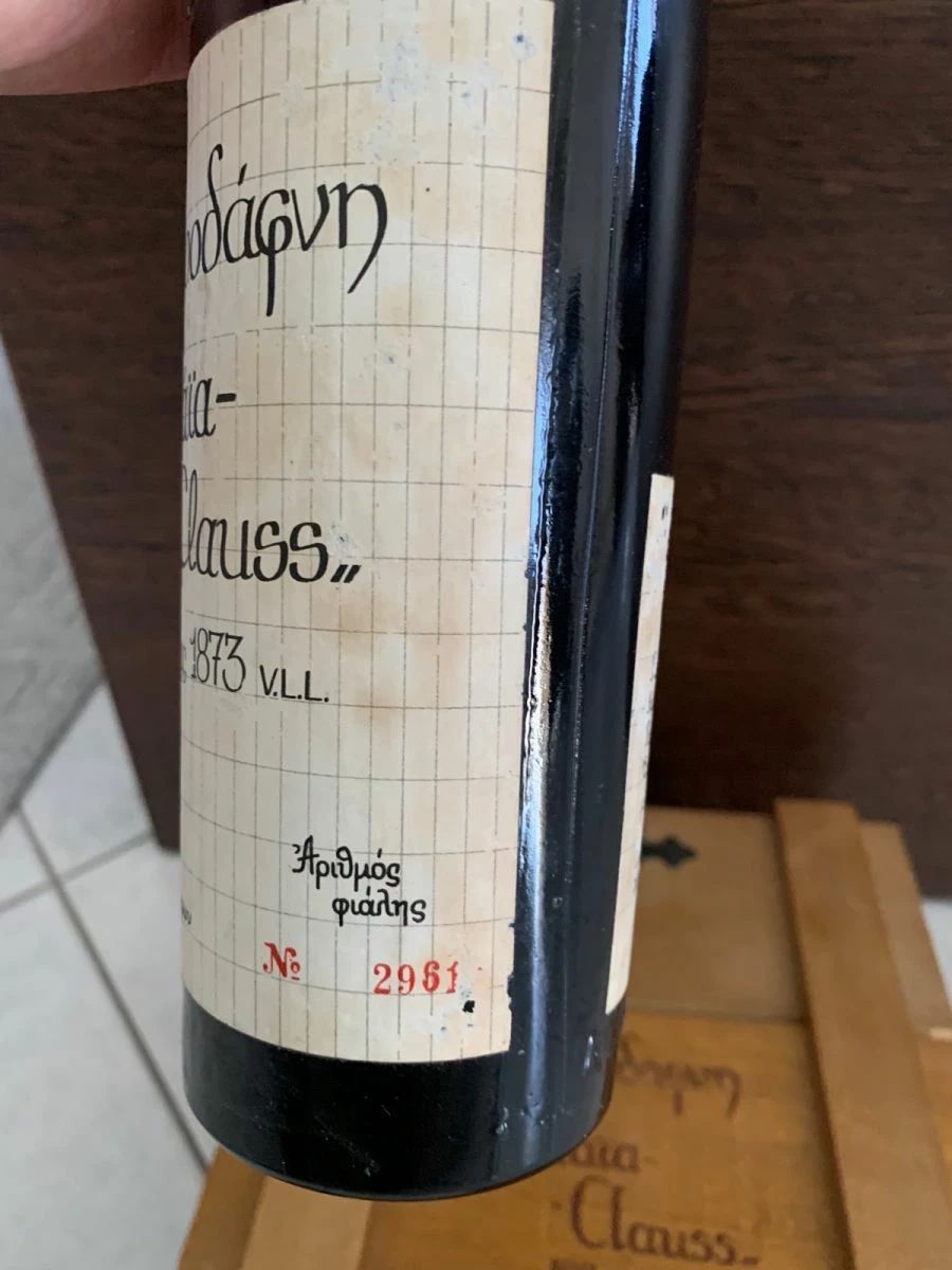 Δύο φιάλες ξεχωριστό κρασί, το πιο παλιό κρασί στην Ελλάδα. Κρασί του 1873 και του 1898 όταν ο Gustav Clauss οργανώνοντας τη κάβα του αφιερώνει ένα βαρέλι στον Καγκελάριο Βίσμαρκ και ένα στο Βασιλιά Γεώργιο Ά από το γλυκό μαύρο κρασί που πρώτος δημιούργησε, το ο ομάδα μαυροδάφνη και το όνομα έγινε τύπος κρασιού.