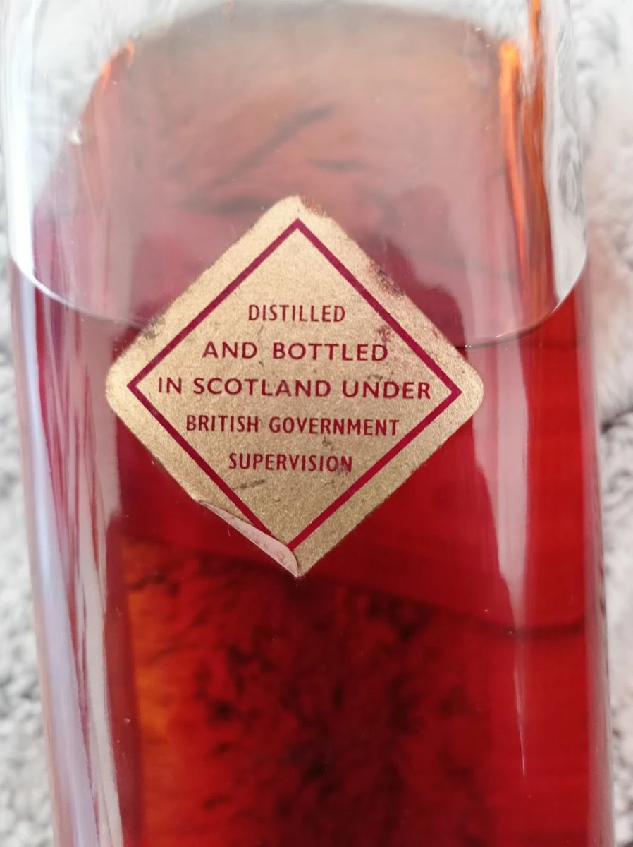 An old bottling of Johnnie Walker Red label which, we estimate, dates from the 1950s – 1960s.