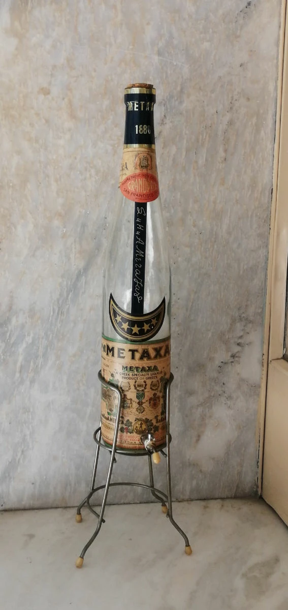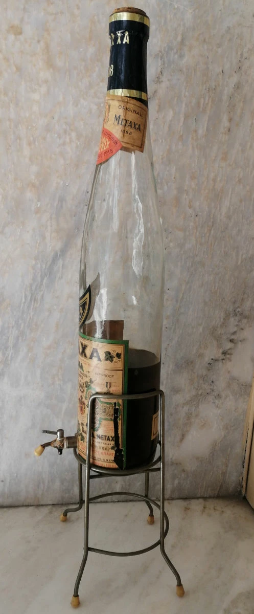 Συλλελκτική φιάλη μπράντι ΜΕΤΑΞΑ, 3λιτρο, με βρυσάκι και βάση.