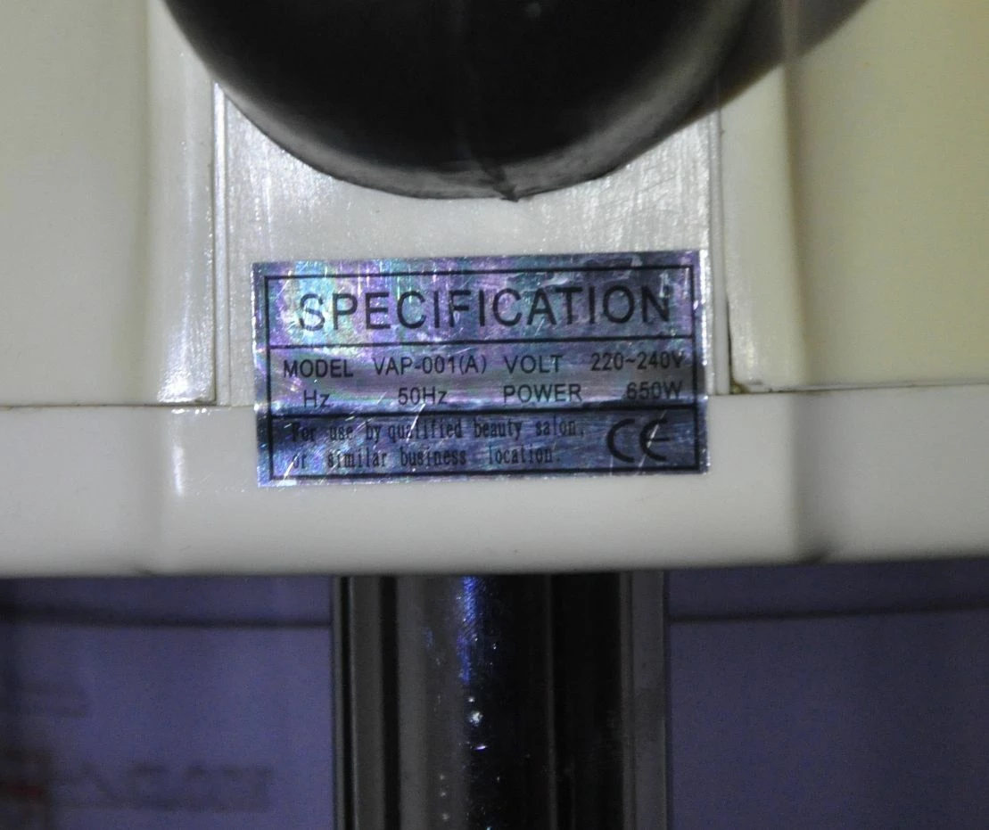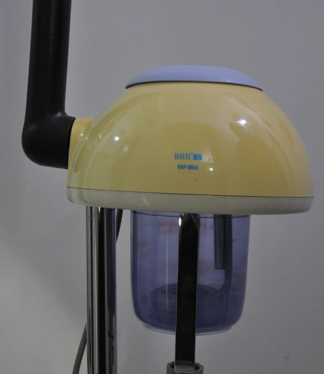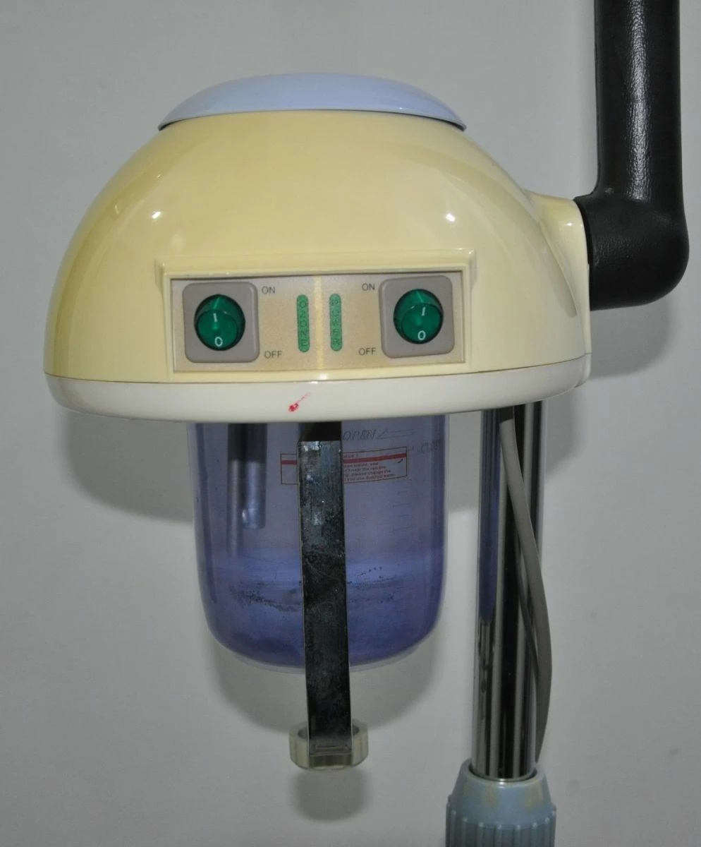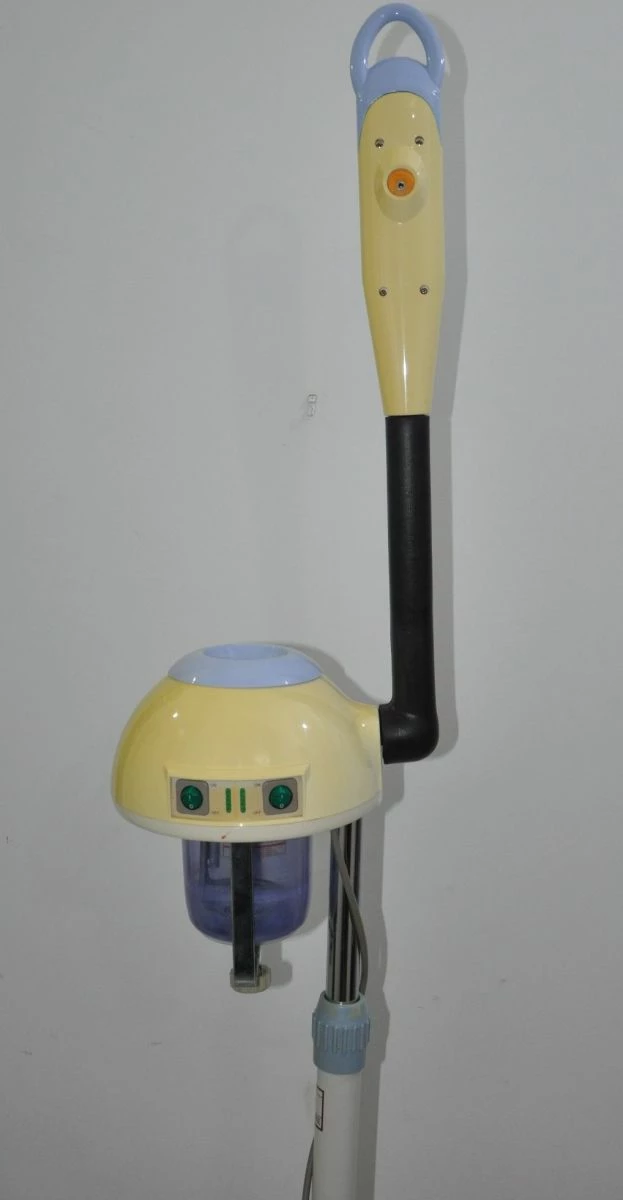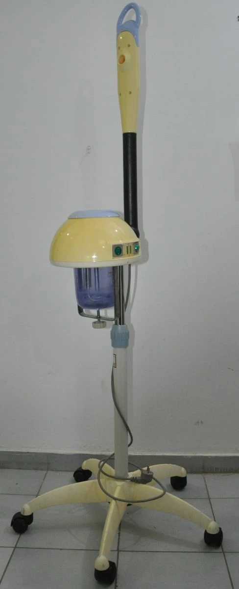 Συσκευή καθαρισμού – Vapeur – προσώπου. Ελαφρύς, μοντέρνος και λειτουργικός σχεδιασμός. Είναι εξοπλισμένο με τηλεσκοπικό βραχίονα για ρύθμιση ύψους, περιστρεφόμενη κεφαλή και δοχείο . Διαθέτει βάση πέντε ποδιών με τροχούς για εύκολη κίνηση. Κατάλληλο για θεραπείες καθαρισμού προσώπου με ατμό.