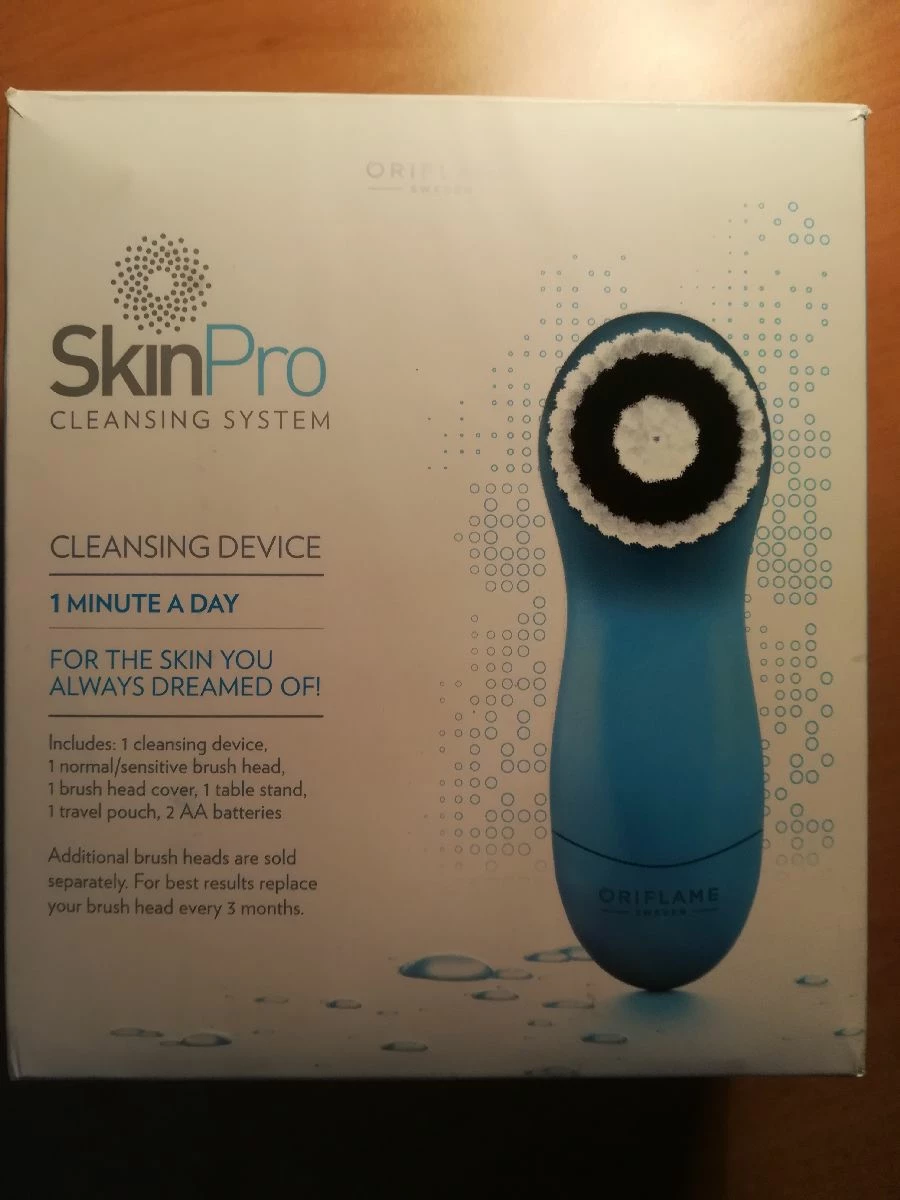 σύστημα καθαρισμού προσώπου oriflame, καινούργιο, στο κουτί του, με βιβλιαράκι, βάση, 2 μπαταρίες και θήκη ταξιδιού.