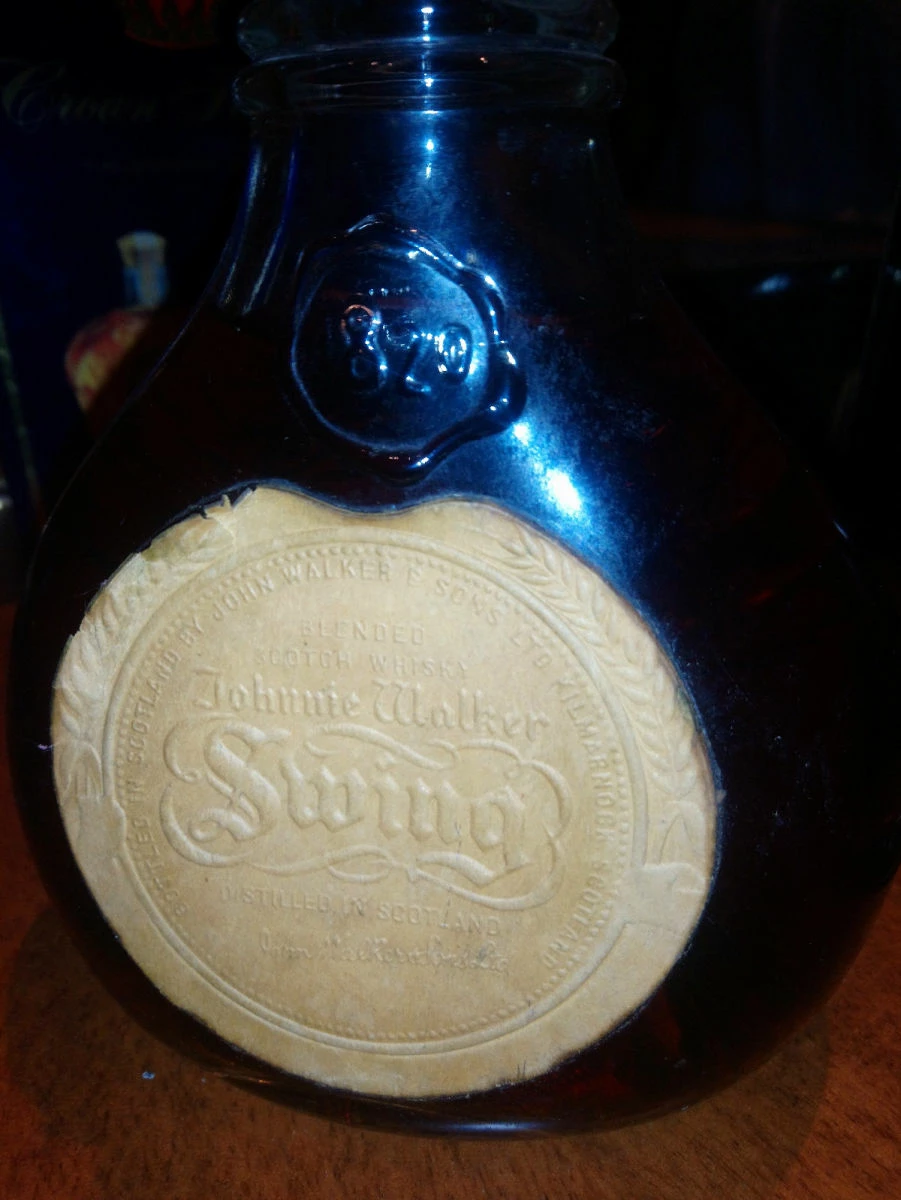 Το τζονυ γουοκερ ουίσκι σουινγκ βγήκε το 1927 μάλλον καί ή ετικέτα καί το ανάγλυφο τής φιάλης είναι διαφορετικά από ότι στα νεώτερα. Εκτίμηση από το όνομα στην πινακίδα ότι ή φιάλη αυτή είναι από το 1955 περίπου σφραγισμένη.