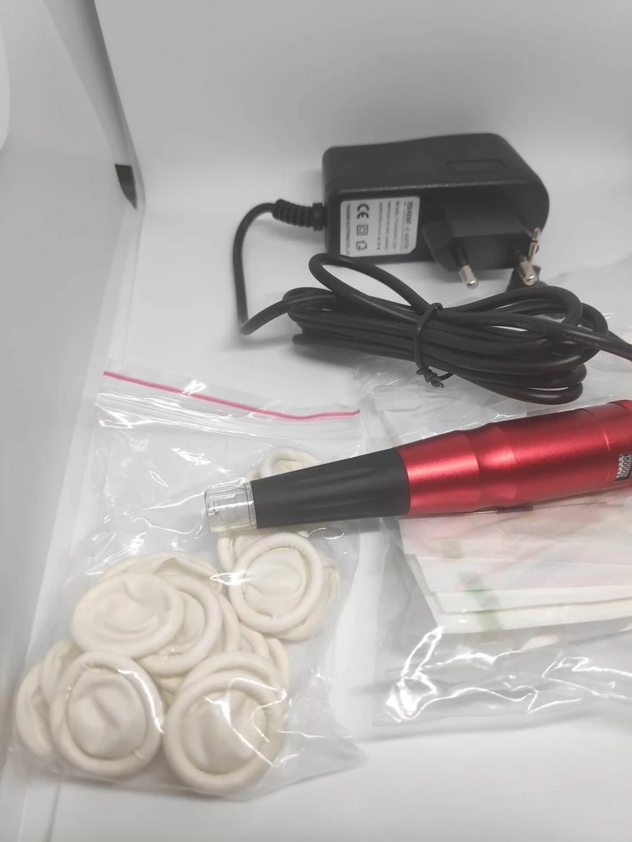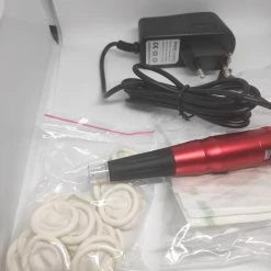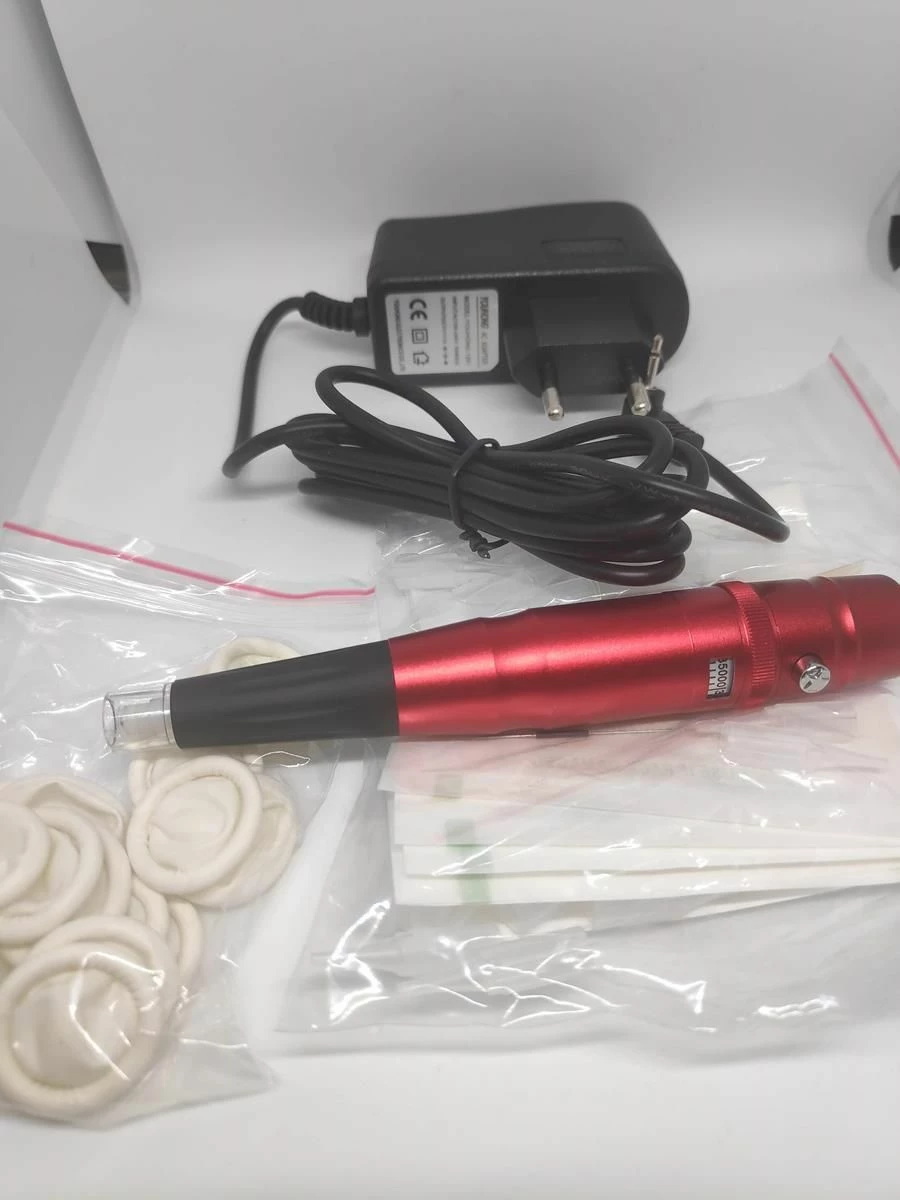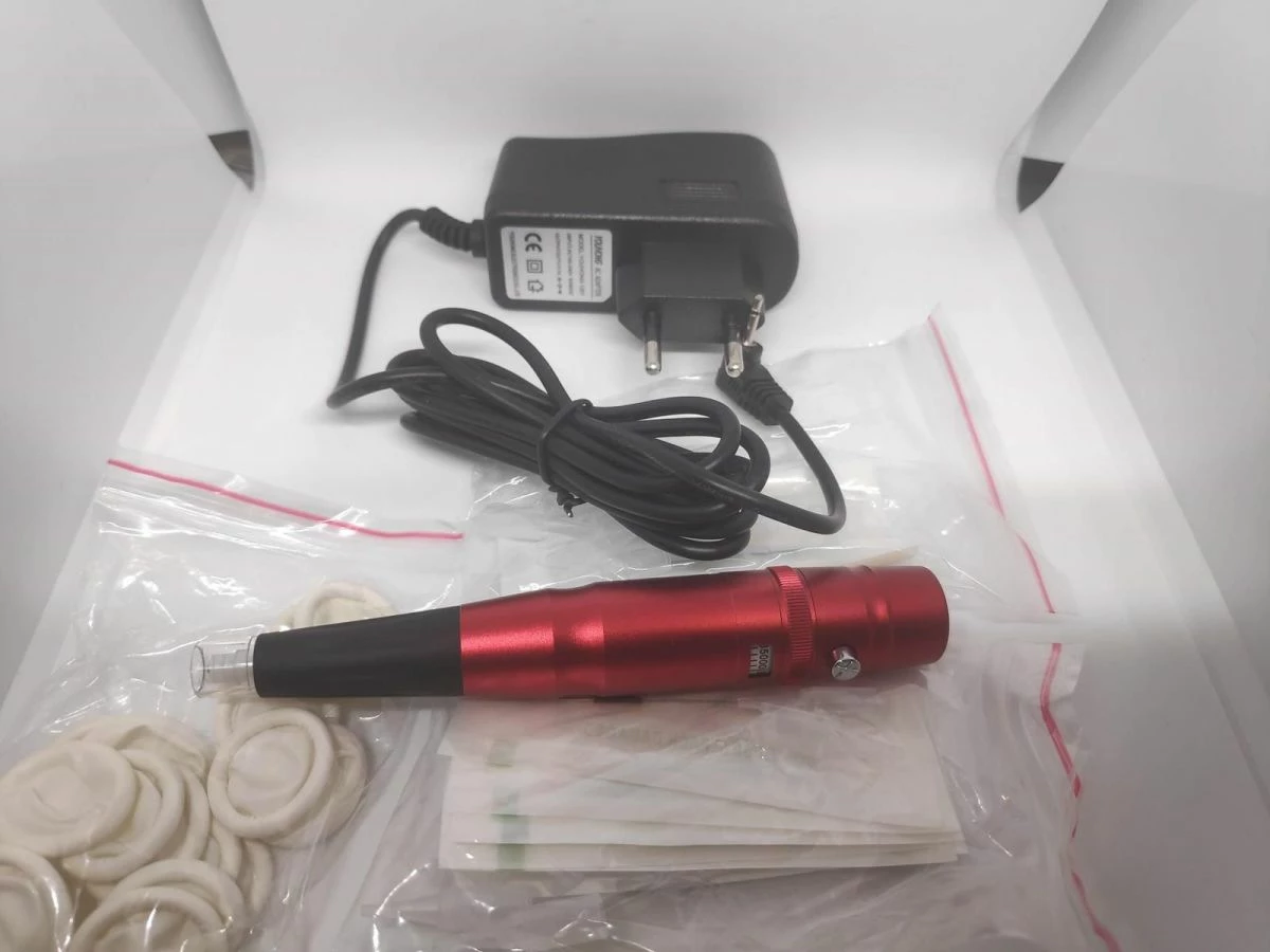 Το πακετο διαθετει μεσα οτι βλεπετε οπως μηχανημα στυλο,τροφοδοσια,βελονες,μυτες,λαστιχακια.