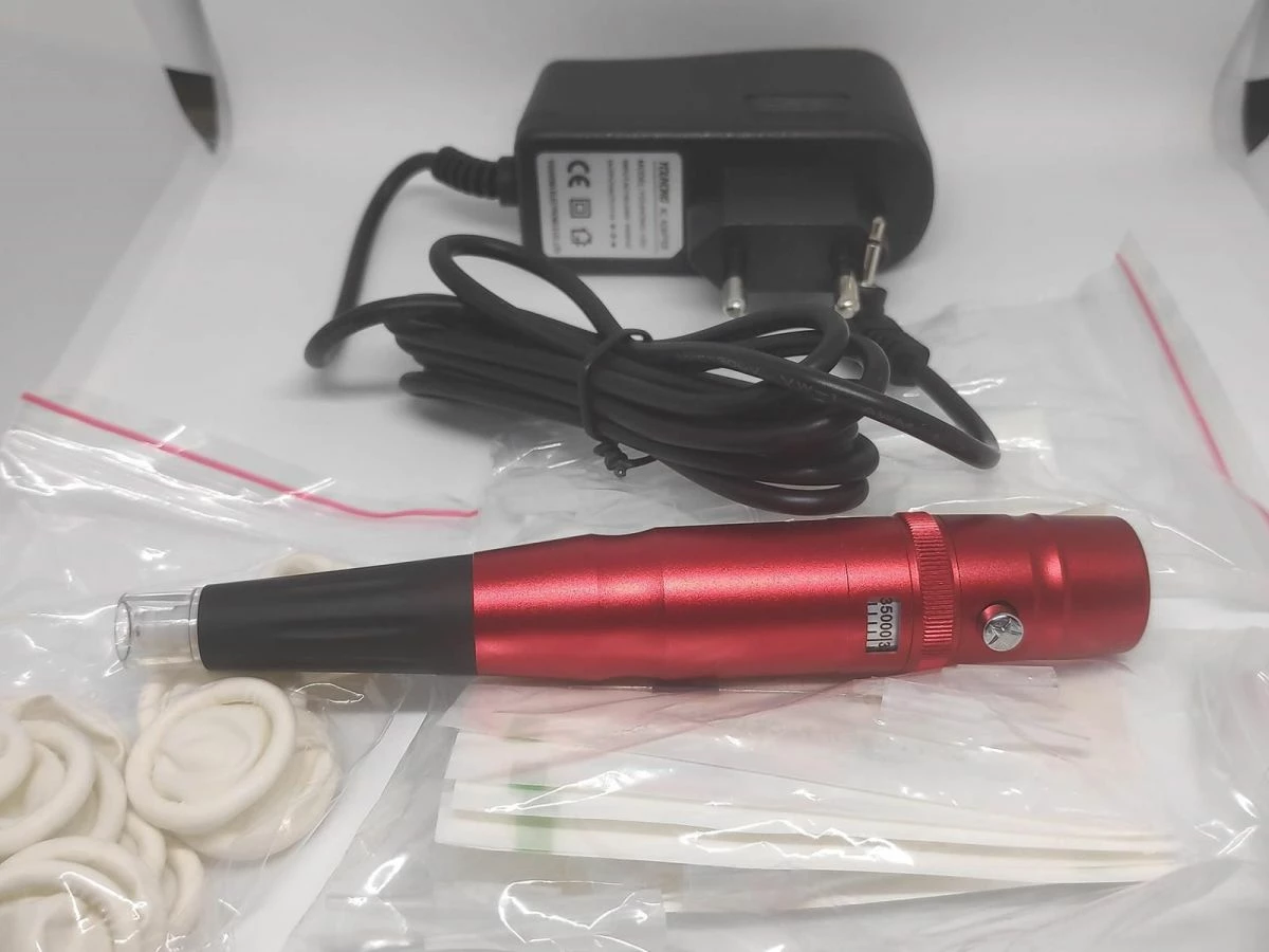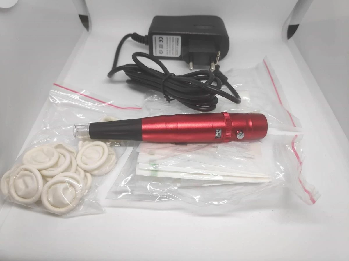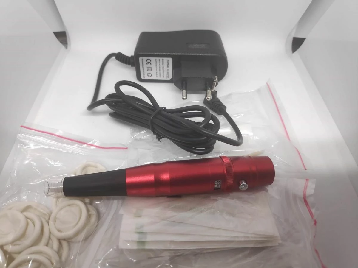 Το πακετο διαθετει μεσα οτι βλεπετε οπως μηχανημα στυλο,τροφοδοσια,βελονες,μυτες,λαστιχακια.