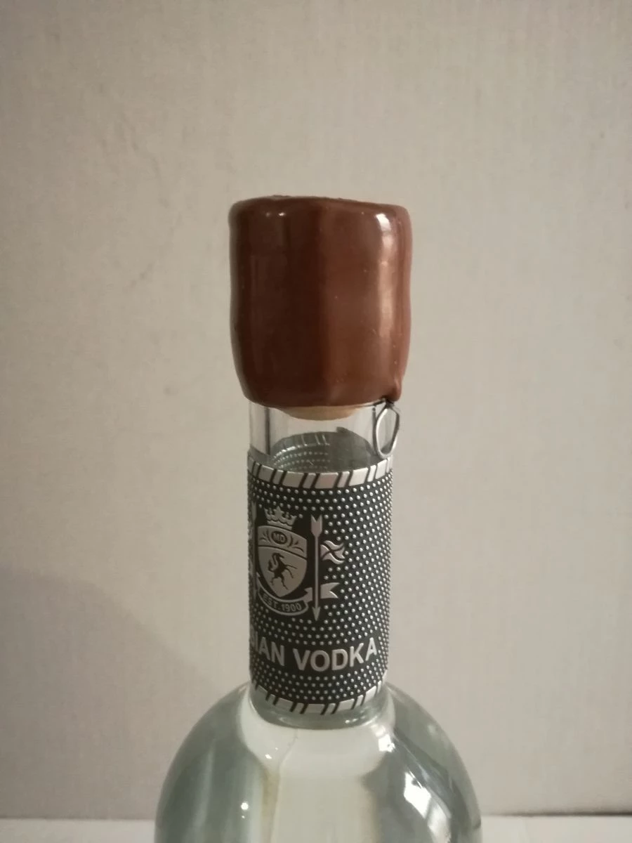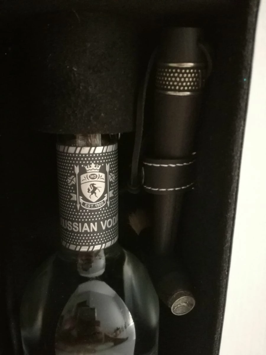 Βρίσκεται μέσα σε δερμάτινη θήκη και περιεχέι σφυρί και πινέλο για το άνοιγμα και καθάρισμα της φιάλης από το βουλοκέρι. Παραλαβή χέρι με χέρι από Ηλιούπολη
