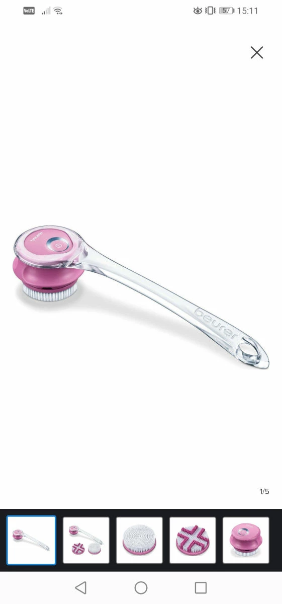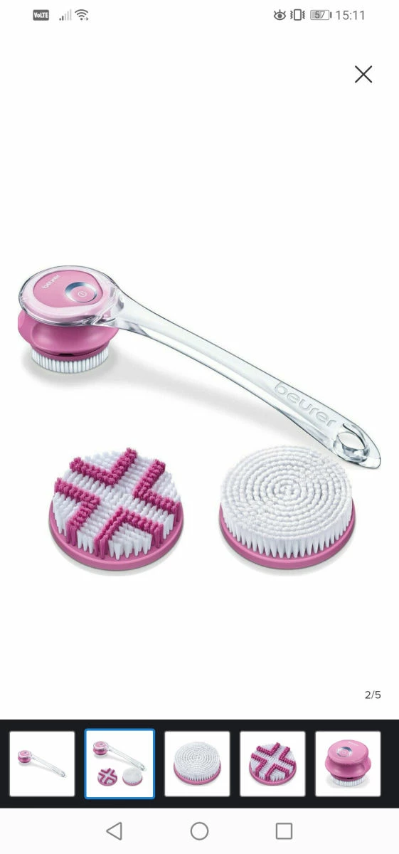 Beurer ηλεκτρική βούρτσα καθαρισμού κ απολέπισης σώματος. Με 2 κεφαλές, αδιάβροχη, επαναφορτιζομενη. Ολοκαίνουρια με όλα τα παρελκόμενα και τις οδηγίες χρήσεως. μόνο στο κουτί έχει στάξει κολόνια και ποτισε. Εγώ το είχα αγοράσει 110. Η φθηνότερη τιμή στο σκρουτζ τώρα είναι 77 ευρώ.