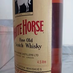 Ουίσκι WHITE HORSE 4,5 lit, 43°, 45 ετών, σε άριστη κατάσταση, ελαφρώς εξατμισμενο, λόγω παλαιότητας. Είναι σφραγισμένο, με το καπάκι λίγο πειραγμενο.